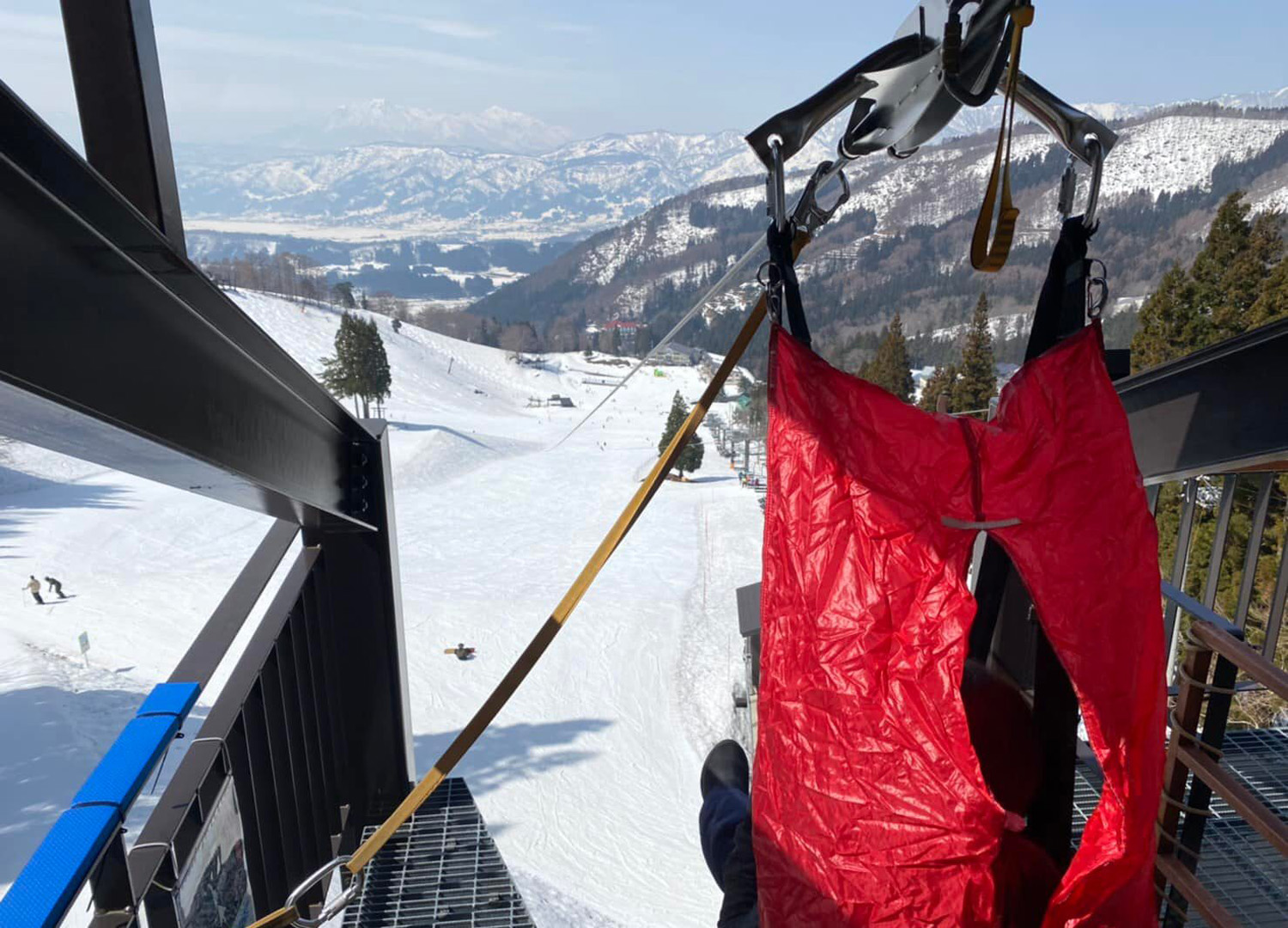 日影ゲレンデの最上部から麓まで張られたワイヤーケーブルを一気に滑走!まるで鳥になったような視点で、雄大な自然を空から体感できる爽快アクティビティです。